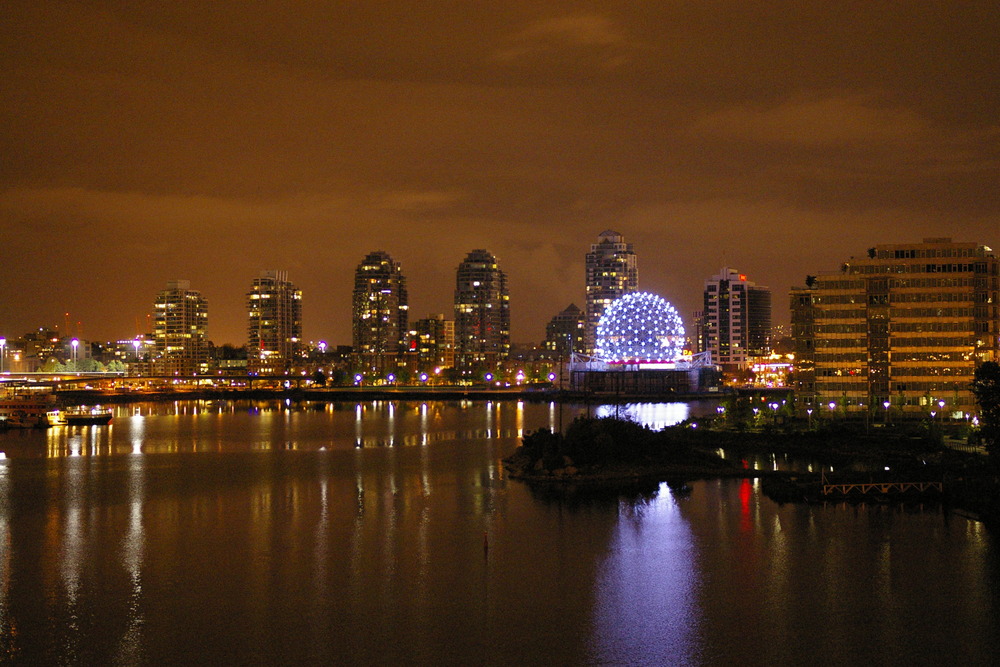 Just a couple pictures this week, as a tribute to the Canucks momentous Western Conference Final win tonight… even Science World is showing its team support by lighting up blue, green and white at night time. This picture is doubly special for me because besides just looking really cool, I showed up ten minutes before they turned off the lights for the evening to snag these shots, and also in the process I accidentally dropped and broke my DSLR lens. At least it turned out!