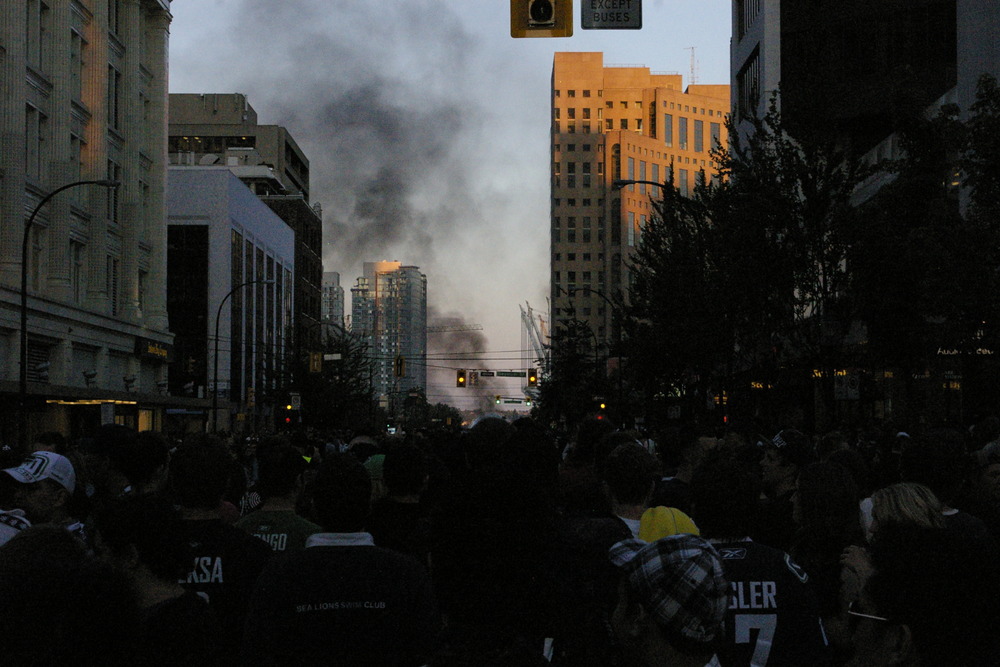 Following the game seven loss to the Bruins, dejected Canucks fans could be found everywhere you looked — but especially in the downtown core where a rumoured 100,000 fans gathered to watch the finale. Depending on where you were, everything from the burning of cars to store fronts smashed and pillaged could be seen. Police scrambled to keep the peace, but little could be done when they were vastly outnumbered. It wasn’t until the sun went down and the riot squad showed up with pepper spray and smoke canisters were the streets really cleared. It was both a sad and scary sight. And although the rioting was started by only a few, it was joined by far too many.