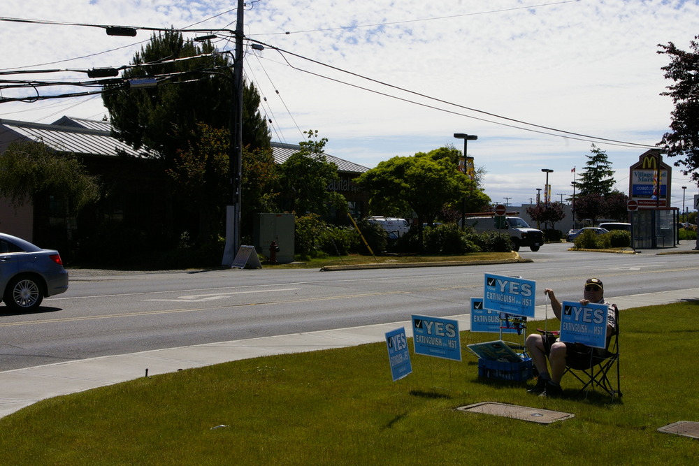 Day two wasn’t much more eventful. Working at a paper in a small community means you write a lot about, well, the community. The first story I filed was about the debut of a local outdoor film festival, with the proceeds going to charity. The next article was a teaser about an up-and-coming “super” medical clinic in town, where all six physicians were joining together to work under on roof. Also, a fellow had set up on the lawn right outside our office to promote anti-HST’ism. I chatted with him briefly, and listened to not only his qualms about the Harmonized Sales Tax, but also his disdain for BC Transit.