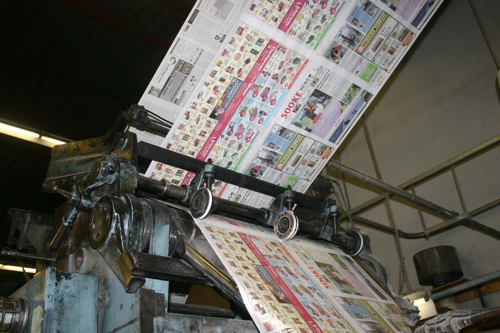 On southern Vancouver Island, everything gets printed at Goldstream Press in Saanich. Getting its name from when it was still located in Goldstream, B.C. in the 1980s, it prints the Goldstream Gazette, the Saanich/Victoria News, and all the other weekly and bi-weekly Black Press publications south of Duncan equalling a print run in the hundreds of thousands every few days.