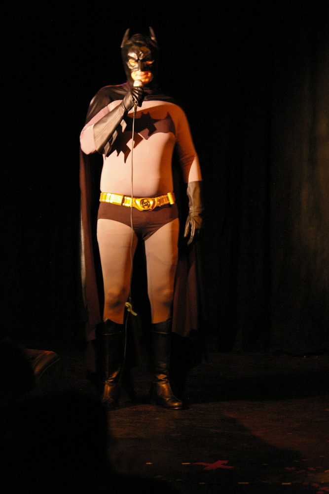 After an opening song sung by Diane Pancel, a costumed Josh Zed from Stand Up For Mental Health appeared on stage to tell a few jokes posing as an out-of-shape Batman. He later revealed it was the only clean outfit left in his wardrobe.