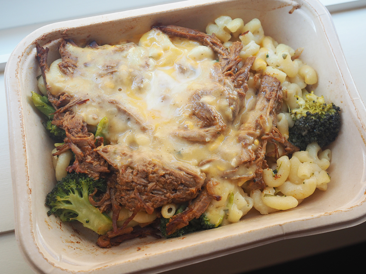 This dish doesn’t need much explanation other than the macaroni is just the right amount of creamy, and the roast beef smothered above is oh so tender and juicy. A few broccoli florets add some colour and variety.