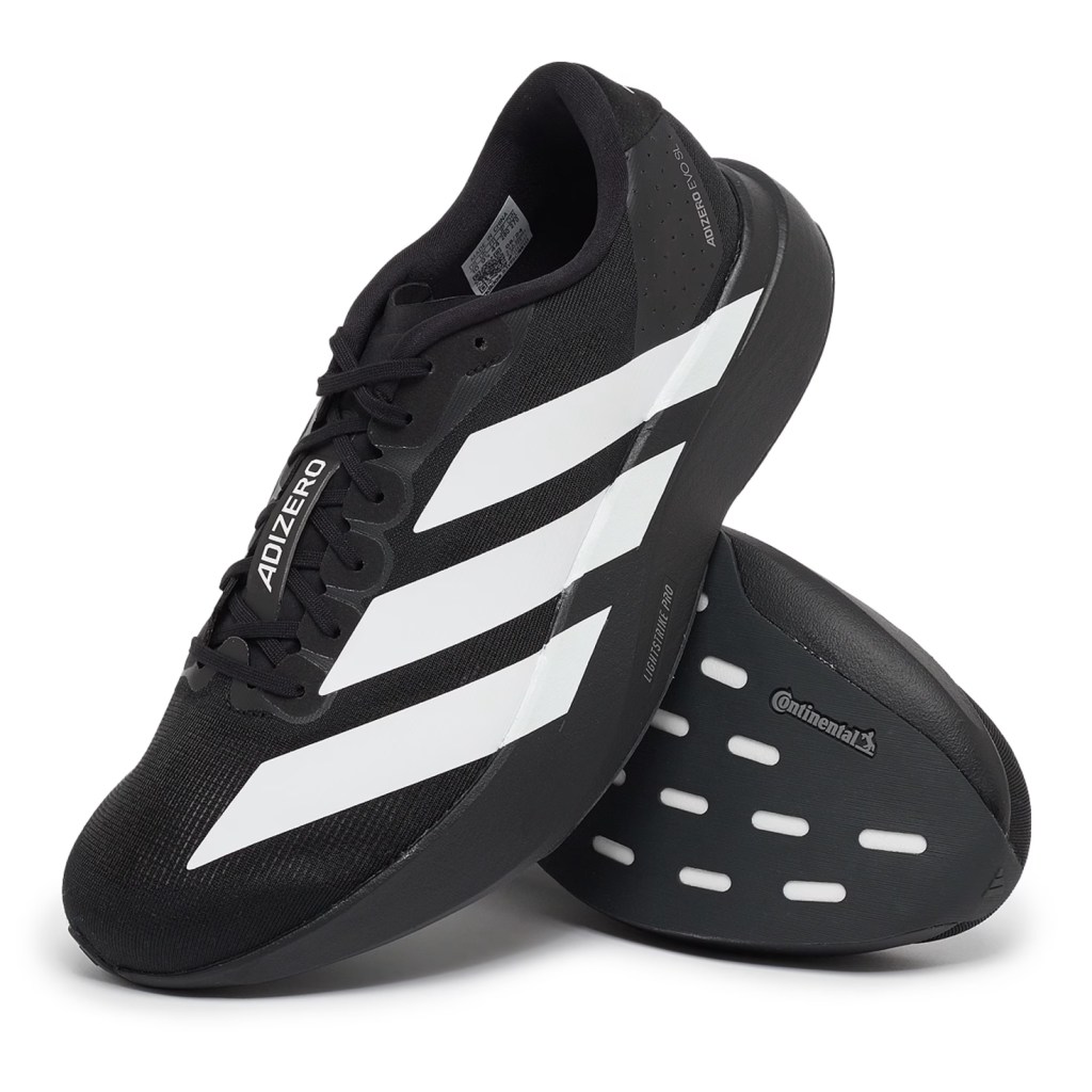 Launched earlier in the year, the new Adidas Adizero EVO SL is the working man’s Pro EVO 1 — a comfortable, performance-oriented road racing shoe that won’t break the bank. The chunky synthetic and textile upper is dominated by oversized stripes on both sides and a smaller logo on the heel tab, and the midsole features signature Lightstrike Pro technology combining two layers of ultralight foam providing optimal energy return with every foot strike.